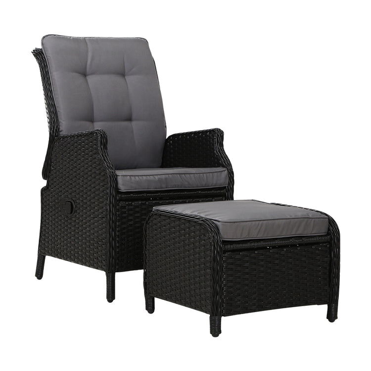 Now you can really sit back and chill in the outdoors with the Gardeon Wicker Recliner Set. Comprising an oversized recliner and matching ottoman, the outdoor ensemble is everything you need for relaxation in elegant wicker style. The set is made of UV-resistant and weather-resistant PE wicker so that you never have to worry about rust, corrosion or weathering issues. The heavy-duty powder-coated steel frame is sturdy and hardy and will stand up to robust use easily. More importantly, the recliner has an adjustable backrest to suit your angle of rest. Better still, the seat cushion is made of high-density foam for ultra-comfort while the zipped cover is weather-resistant, removable and washable. Not least, the useful ottoman is just perfect for putting your feet up. Yes, it is indeed paradise under the sun, moon and stars. Have it outdoors or indoors, the wicker recliner set is equally at home with its exquisite design and unique presence for any home décor enthusiast.