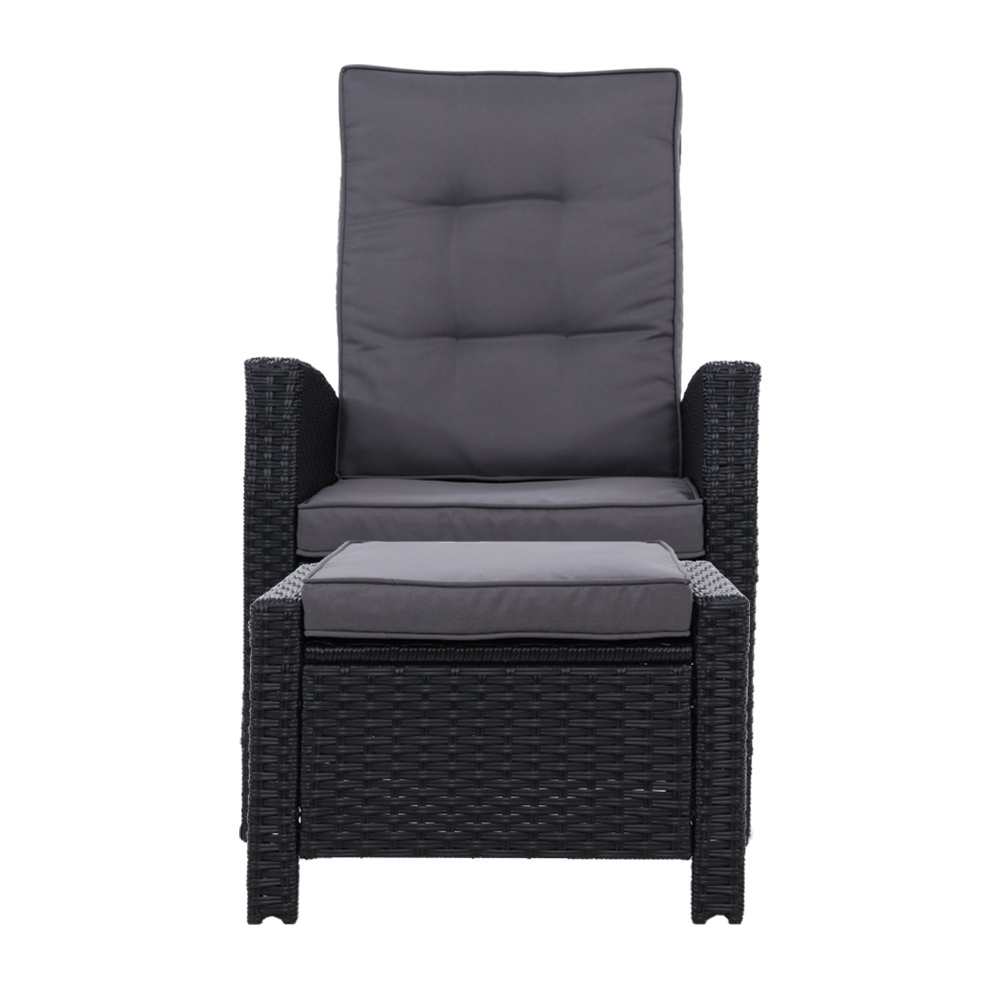 Now you can really sit back and chill in the outdoors with the Gardeon Outdoor Wicker Recliner Set. Comprising an oversized recliner and matching ottoman, the outdoor ensemble is everything you need for relaxation in an elegant wicker style. The set is made of UV-resistant and weather-resistant PE wicker so that you never have to worry about rust, corrosion or weathering issues. The heavy-duty steel frame, also wrapped in wocker, is sturdy and hardy and will stand up to robust use easily. More importantly, the recliner has five inclination settings, from 1100 to 1600, to suit your angle of rest. Better still, the seat cushion is made of high-density foam for ultra comfort while the zipped seat cover is removable and washable. Not least, the useful ottoman is just perfect for putting your feet up. Yes, it is indeed paradise under the sun, moon and stars. Have it outdoors or indoors, the wicker recliner set is equally at home with its exquisite design and unique presence for any home decor enthusiast.