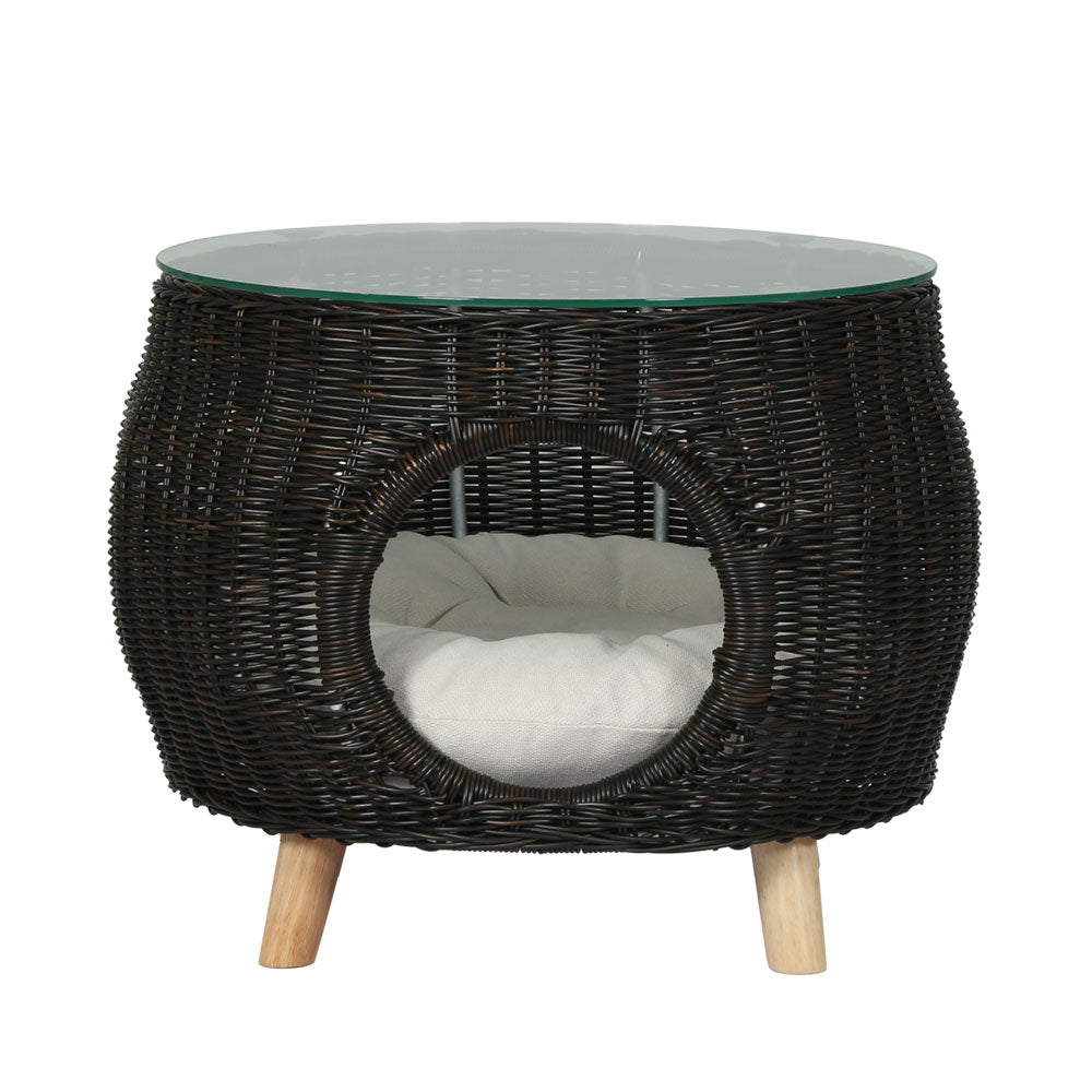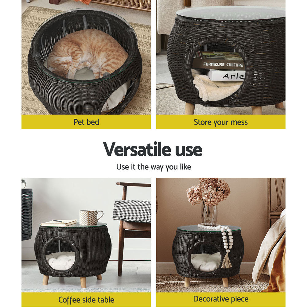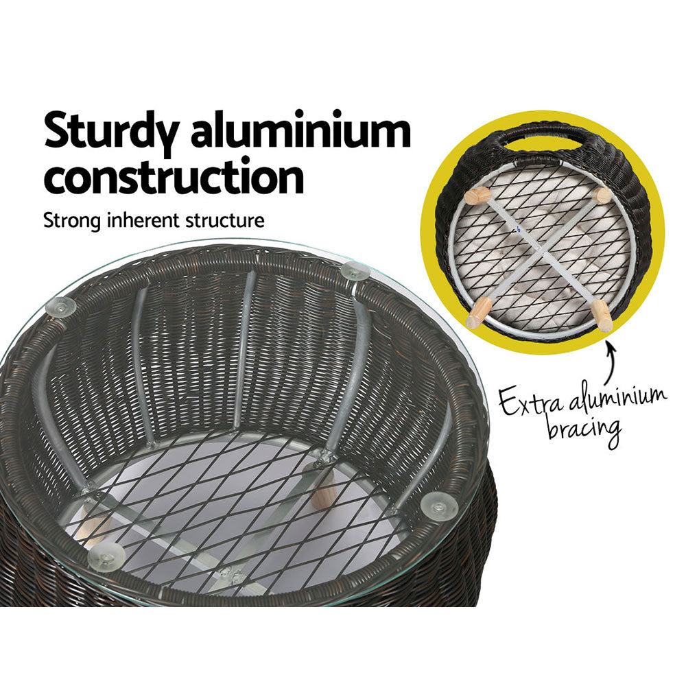 Looking for an out-of-ordinary piece for your home? You won't get disappointed with our Gardeon coffee table. Flaunting 2-in-1 design, this piece makes a great coffee table while serving as a delightful resting for your pet. It features a simple yet glamorous design that's sure to impress you and wow your guests. Our coffee table boasts sturdy aluminium frame construction with extra aluminium bracing, which makes it suitable for all-weather use and rust-free, and the premium handwoven PE wicker design lends this piece a tropical look and feel. It also comes with a thick tempered glass tabletop with suction pads to hold it in place. This coffee table is perfect for indoor and outdoor use. It's elegant and stylish. Its versatile design allows you to style it in various ways. Furthermore, this coffee table is easy to assemble. It doesn't require any tools for assembly. Stylish and practical, our Gardeon coffee table cum pet bed makes a must-have piece in every home. Purchase it today without hesitation.