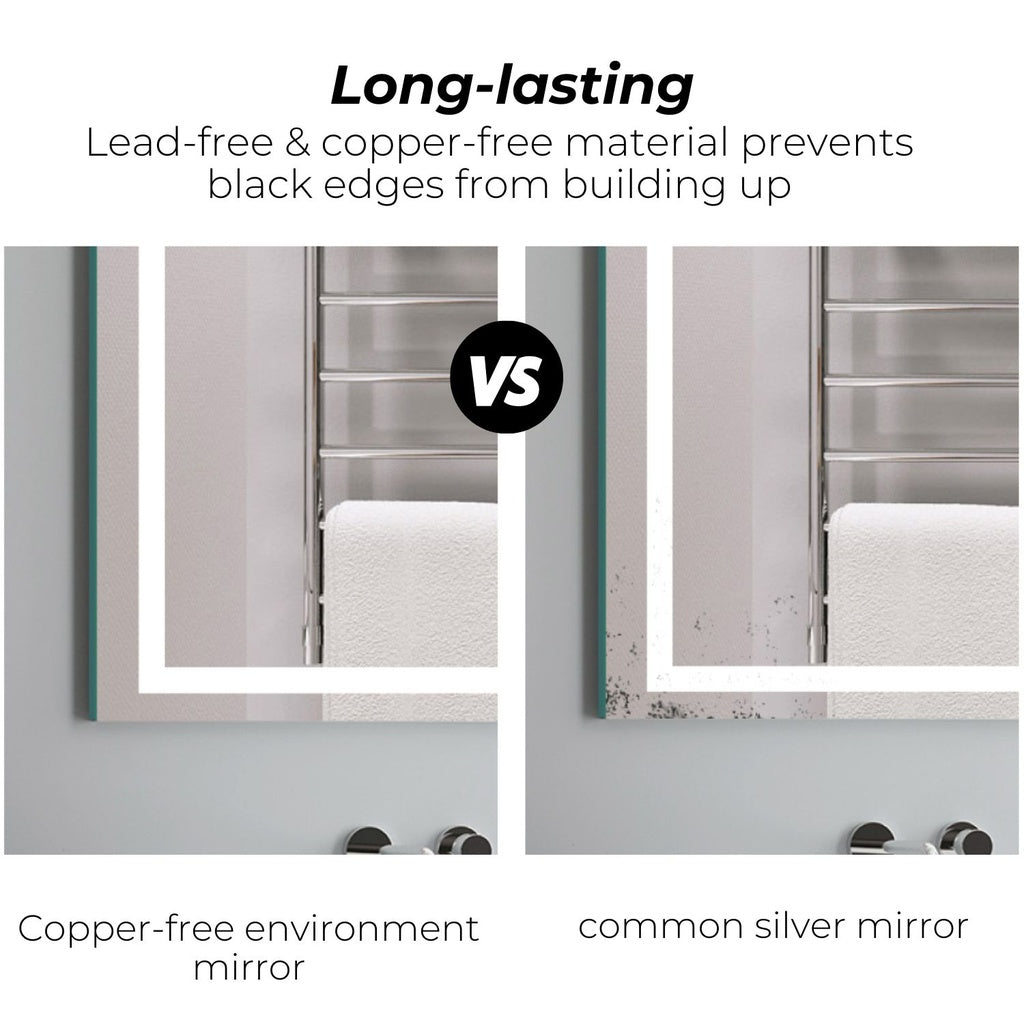 - This bathroom mirror has adjustable LED brightness and enable anti-fogging function with smart touch control