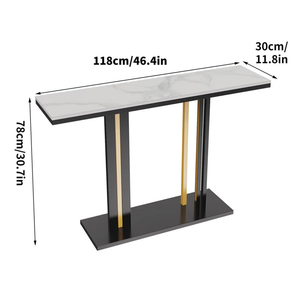 The tabletop of this sintered stone console table measures at L * W *H 118*30*78cm and provides ample space for arranging books, plants, decorative paintings, and other ornaments, ideal for placing it in the entryway, hallway, sofa side, etc.
