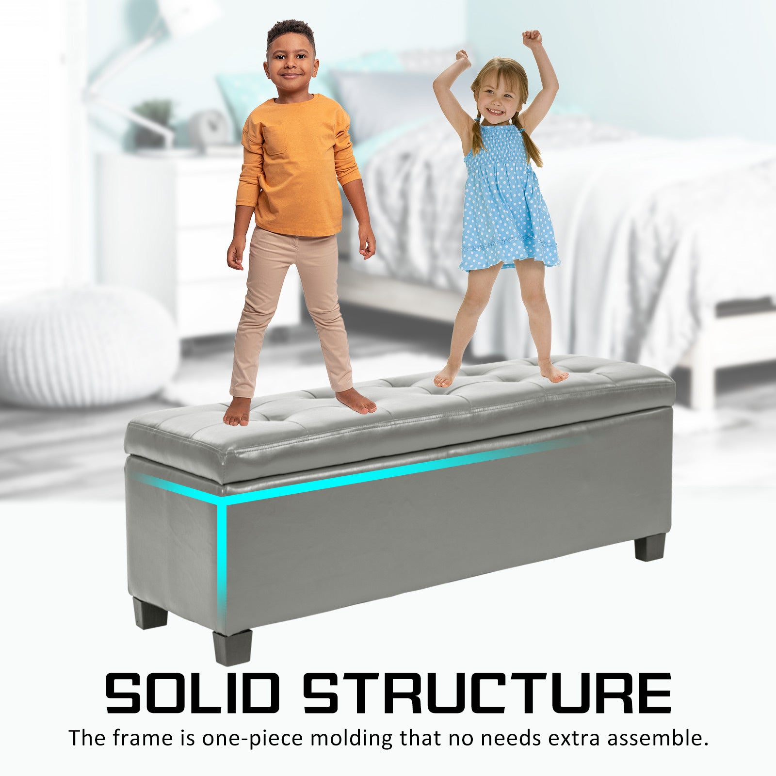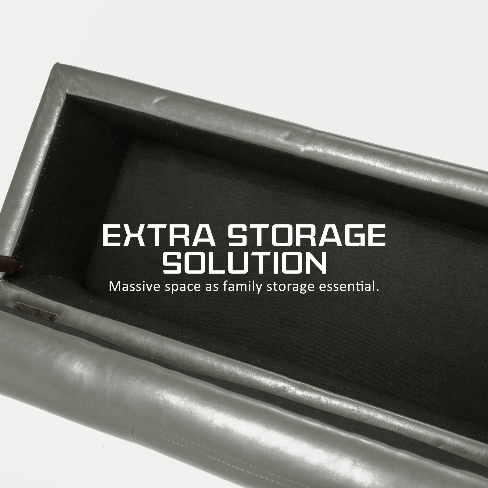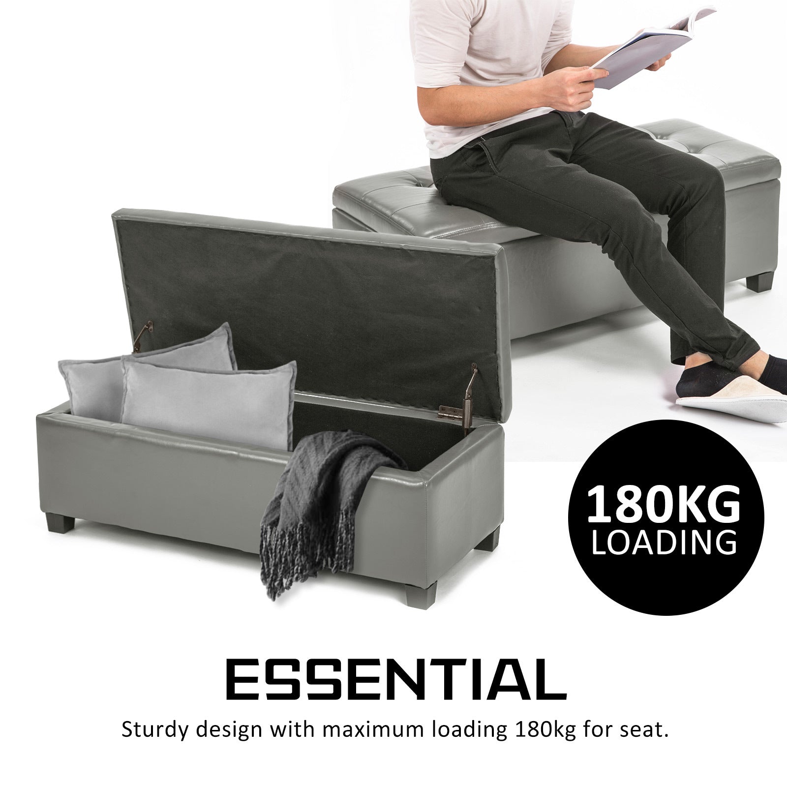 La Bella Storage Ottoman Foot Stool 102cm Leather Blanket Box Chest Toy - Grey