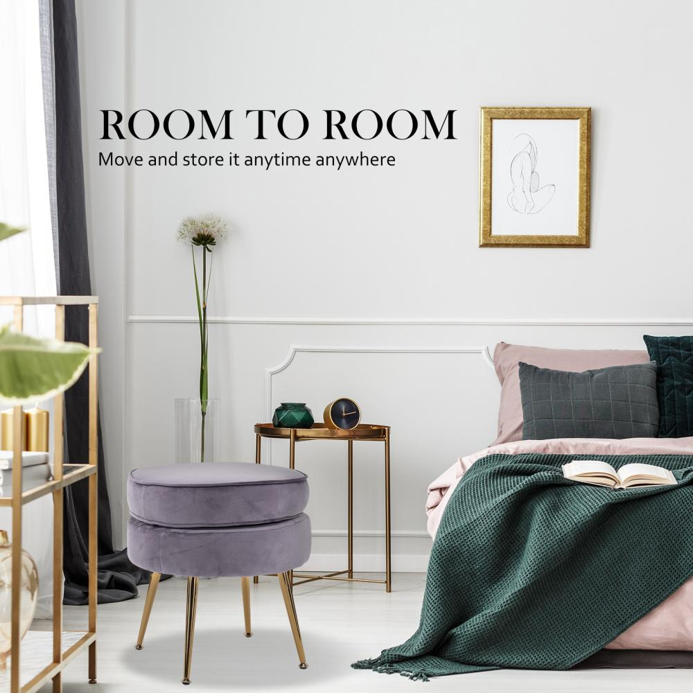 The stool features gold metallic legs that make it look luxurious and exquisite. With adjustable levelling feet added to the bottom, it provides you with a peace of mind, preventing floor scratches, uneven legs, or uneven ground issue. Also, its cushion seat cover is removable for easy cleaning.