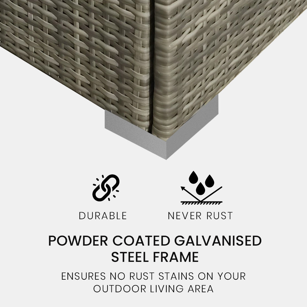 This London Rattan Outdoor Sofa is a stylish yet affordable outdoor lounge designed to provide utmost comfort. The London Rattan outdoor sofa has a durable galvanised steel frame with additional powder coating, ensuring no rust stains on your outdoor living area.