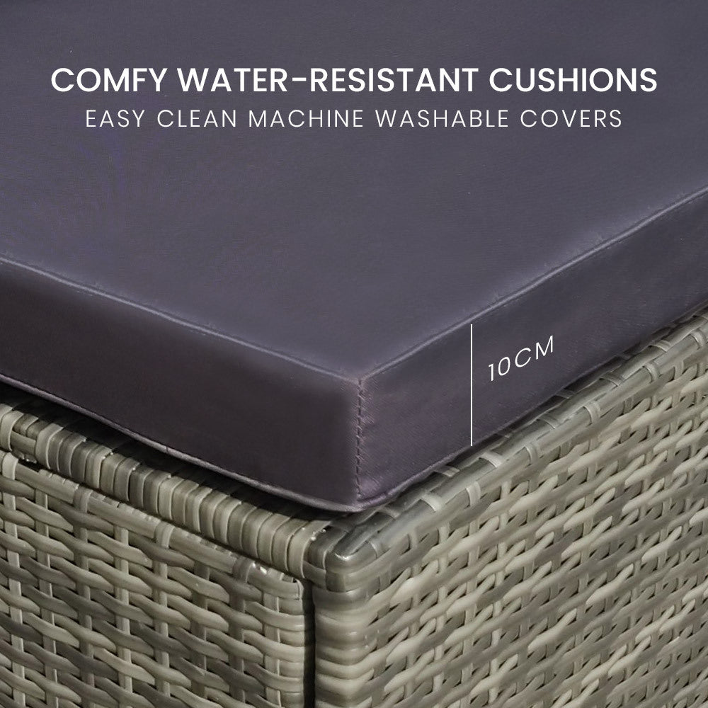 The sofa includes ultra-comfy 10cm thick water-resistant seat cushion and generous backrest cushioning. The high-quality UV-resistant handwoven Suntech wicker in Marl Grey weave has a premium natural textured look. Mix and match with other London Rattan modular pieces to create your own custom outdoor setting. You can set it up in whatever configuration works best for you, making this London Rattan outdoor sofa a great addition to any outdoor space.