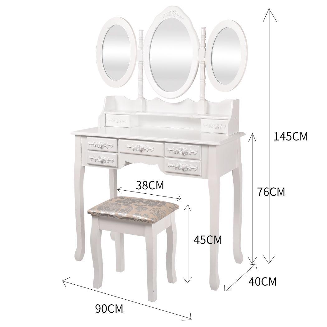 - Dressing table overall dimension: 90(L) x 40(W) x 145(H)cm