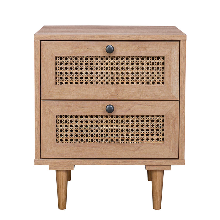 This bedside table includes 2 drawers for small pieces storage