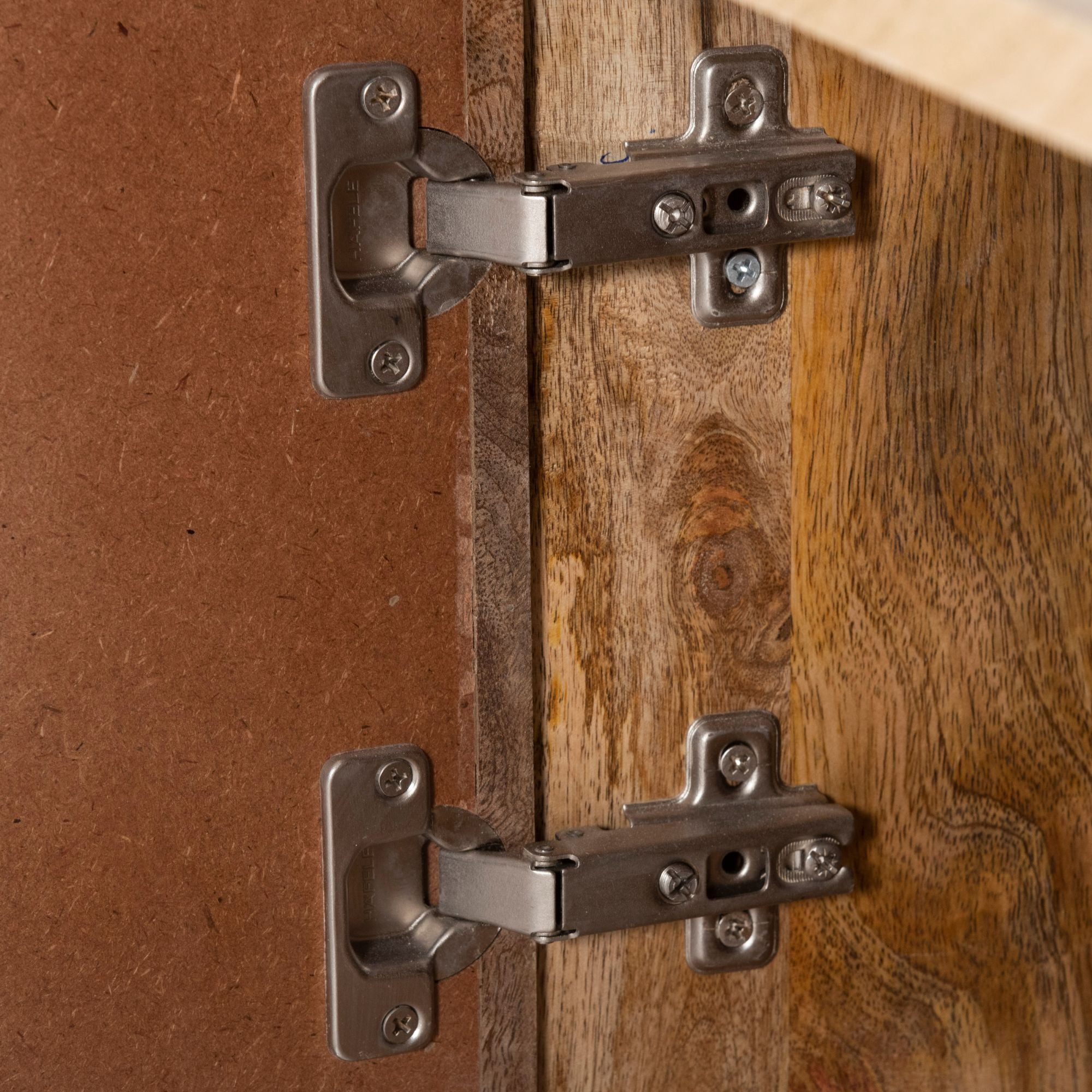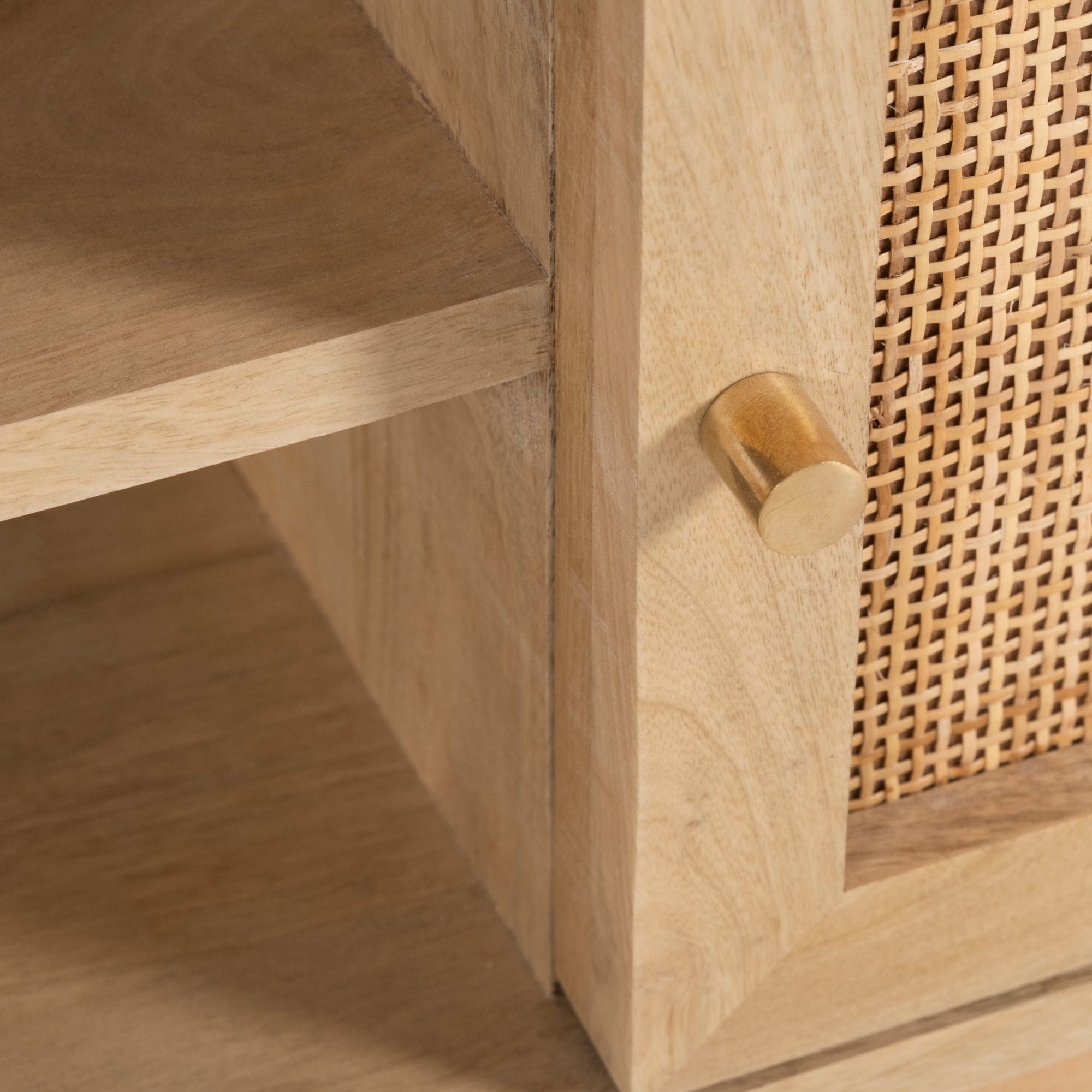 This 2-door TV Unit is a furniture marvel that displays visually appealing natural aesthetics. It is a beautiful furniture piece with 2 niches open on both sides that looks lovely in the living room. Made of sustainably harvested mango wood, the TV Unit has gorgeous rattan weave on the door fronts. Mango wood is valued for its robustness, longevity, and resistance to mould or moisture. Adjustable hinges, magnetic latches, and solid brass metal handles add to the practical functionality of the doors that cover sizable compartments. Attractive tapered legs made of solid timber provide a sturdy base for the TV Unit. Designed in a contemporary style, the furniture piece brings a sense of cosiness and warmth to your living area as you place your entertainment devices on it. The natural colour makes it suitable to complement diverse interior decor styles or furniture pieces. The easy-to-assemble TV Unit comes with a one-year warranty.