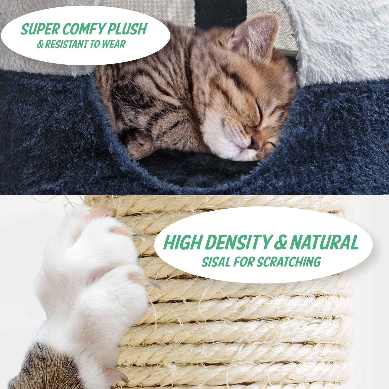 - Plush carpet platforms to give your cat comfortable resting/playing