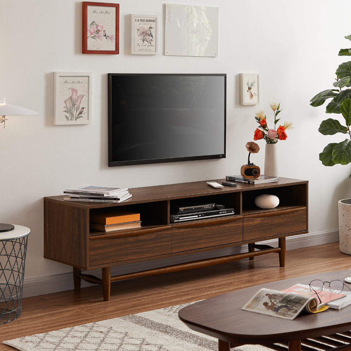 The Pierre TV unit features a combination of open shelves for easy access to all your necessities and discreet drawers to keep unsightly objects away from prying eyes.