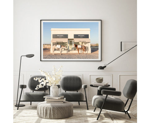 Stylish Prada Marfa fashion horse print wall art decor, in 50 x 70 cm, 60 x 90 cm, 70 x 100 cm.
