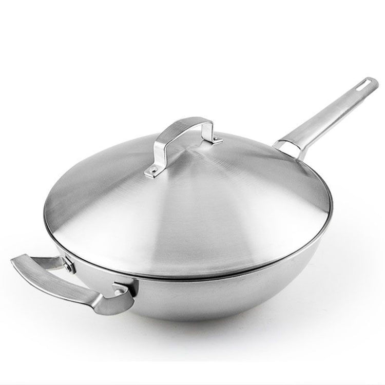 durable three-ply construction features an aluminium core between layers of stainless steel for excellent heat distribution while cooking with this exceptional wok