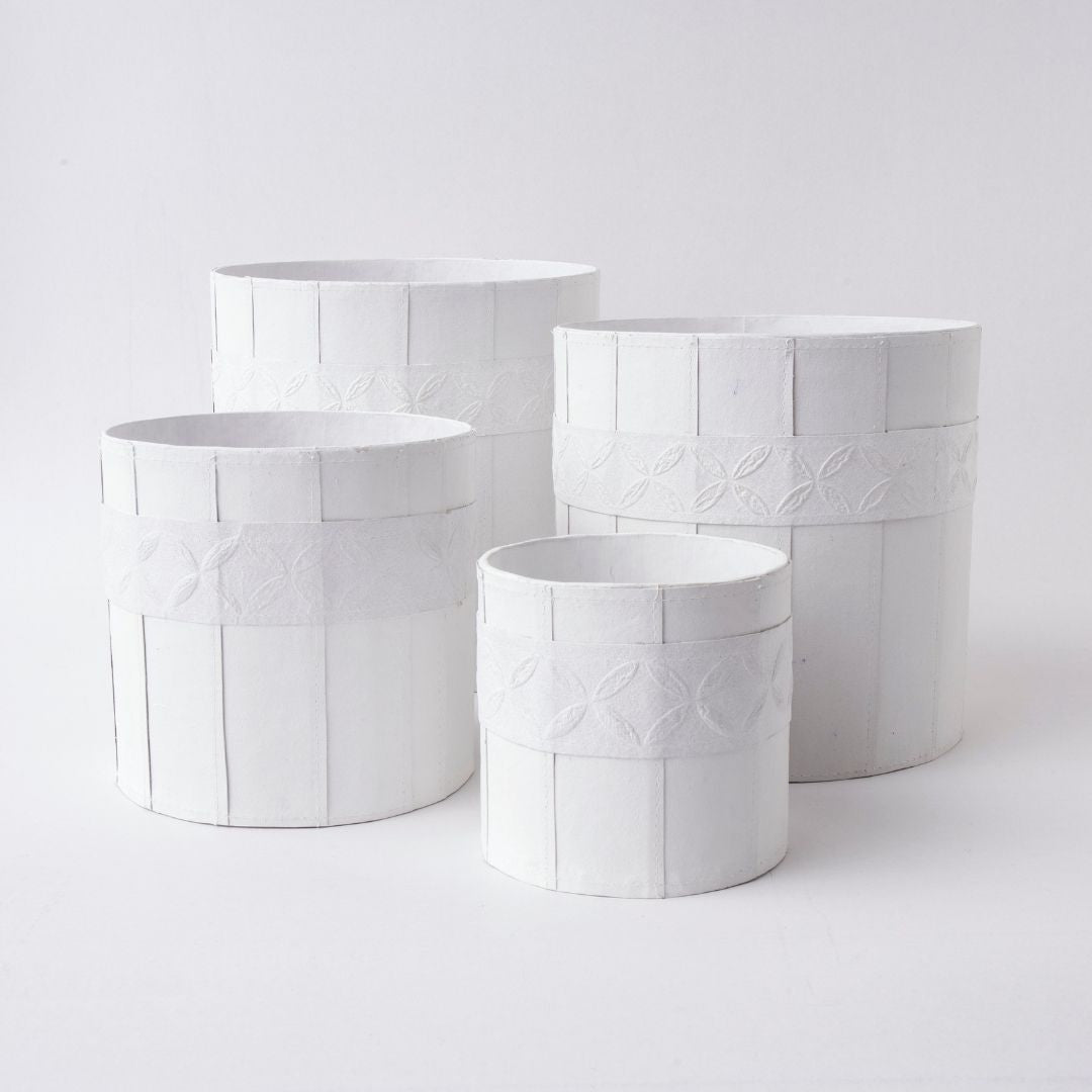 Handmade from recycled paper, each piece has been carefully hand saddle-stitched by our team of artisans in Sri Lanka. Each vessel features a ribbon with delicately pressed motifs resulting in a beautifully textured statement piece that can be enjoyed for a lifetime.